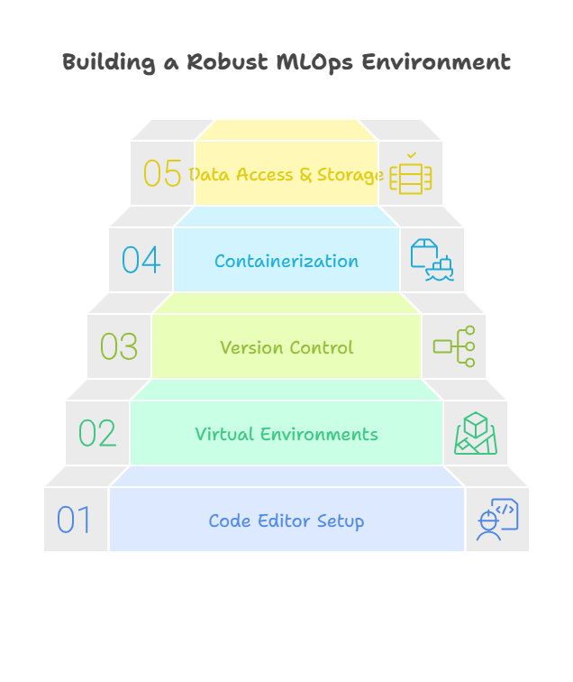 A well-configured development environment is the foundation for effective work in MLOps. For programmers, this means creating a setup that supports experimentation, collaboration, and smooth transition from local development to production deployment.