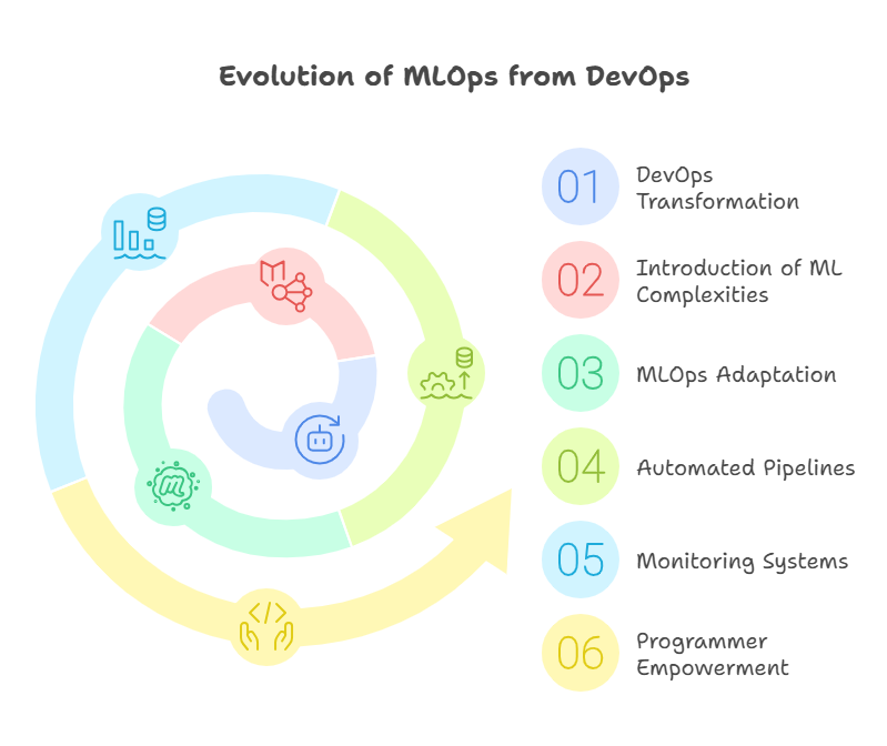 The rise of MLOps is closely linked to the evolution of DevOps in traditional software development. DevOps transformed the way software is built, tested, and deployed by promoting automation, collaboration, and continuous delivery. However, machine learning projects introduce new complexities: data changes over time, models can degrade, and reproducibility is more challenging due to the stochastic nature of training.
