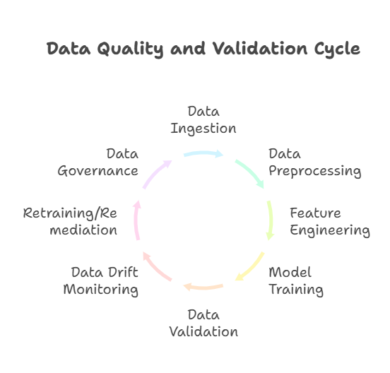 Data quality and validation are fundamental to the success of integrated DataOps and MLOps workflows. High-quality, reliable data is the foundation upon which effective machine learning models are built. Without rigorous data validation, models risk being trained on flawed or inconsistent data, leading to poor performance and unreliable predictions in production.